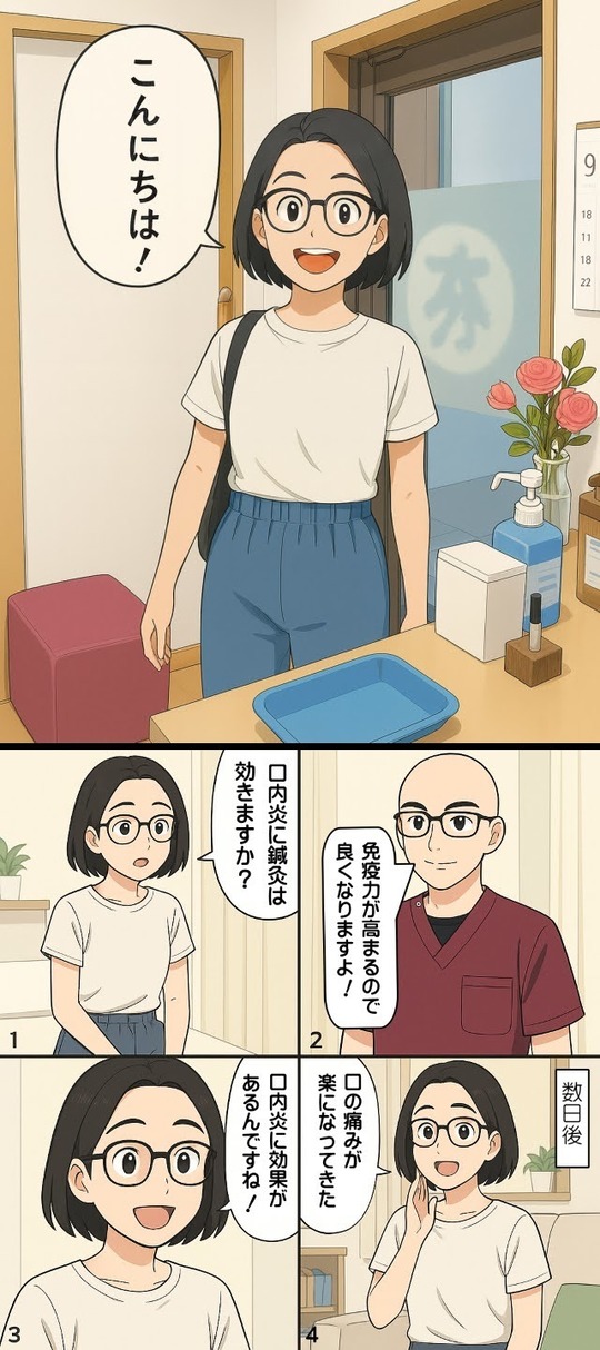 鍼灸院には、色々な不調で来られる方がいますが、時々、口内炎が出来て「飲んだり・食べたりすると痛いんです!」と、お聞きする事があります。