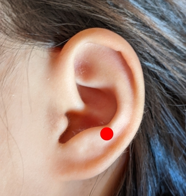 このツボの効能としては、めまいに効くのはもちろんですが、後頚部のコリ・耳の詰まりに良いです。