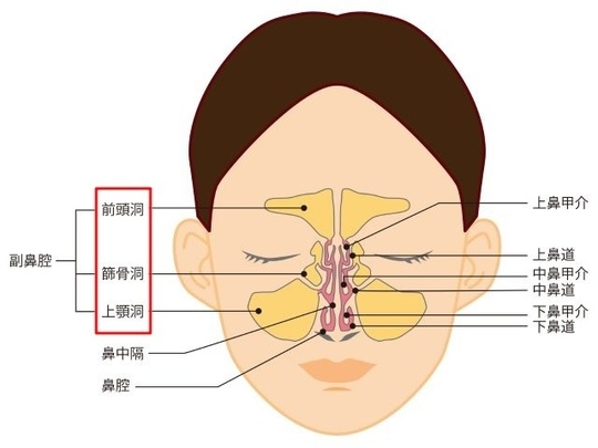 副鼻腔炎は、この空洞にウイルス・細菌が感染し粘膜に炎症や膿がたまってしまう病気です。