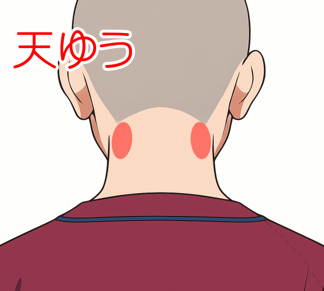 このツボは、耳の下にある骨(乳様突起)の後下方、胸鎖乳突筋の後ろ側にあります。