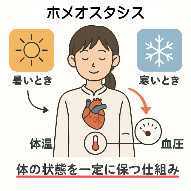 私たちの身体は、外の環境(暑さ・寒さなど)に合わせて、体温や血圧を一定に保ち、心臓を休みなく動かし続けることで、生命活動を維持しています。