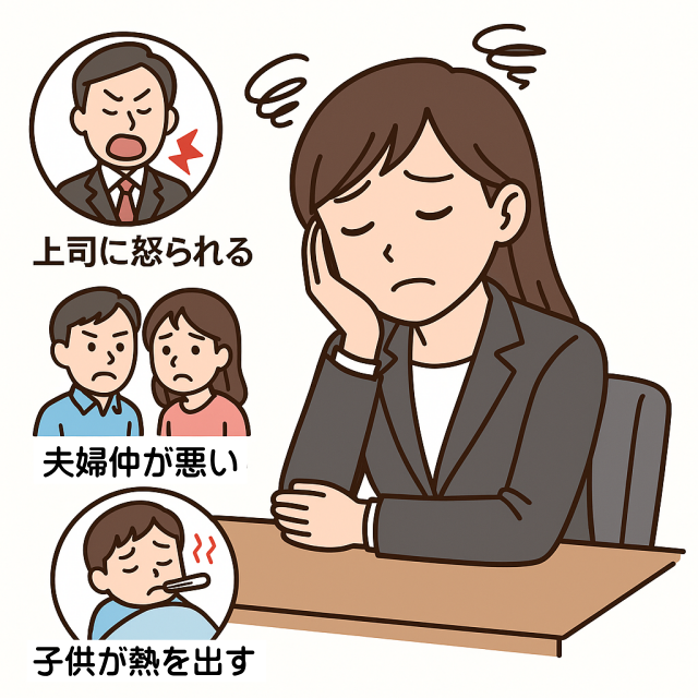 イライラ・不安感・集中力の低下・記憶力の低下・気力の低下・感情の起伏が激しくなる