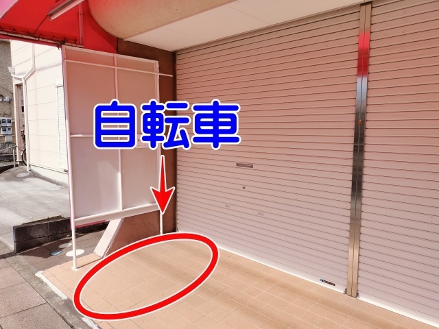 自転車でお越しの方は、オカダ洋品店前に駐輪してください。