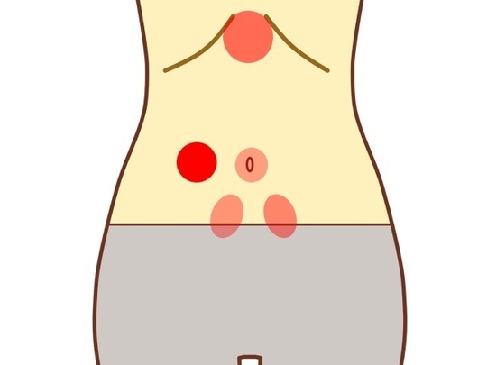 腹診を行なうと、血流が悪い事を表わす瘀血(おけつ)・免疫・ストレス反応が出ている。